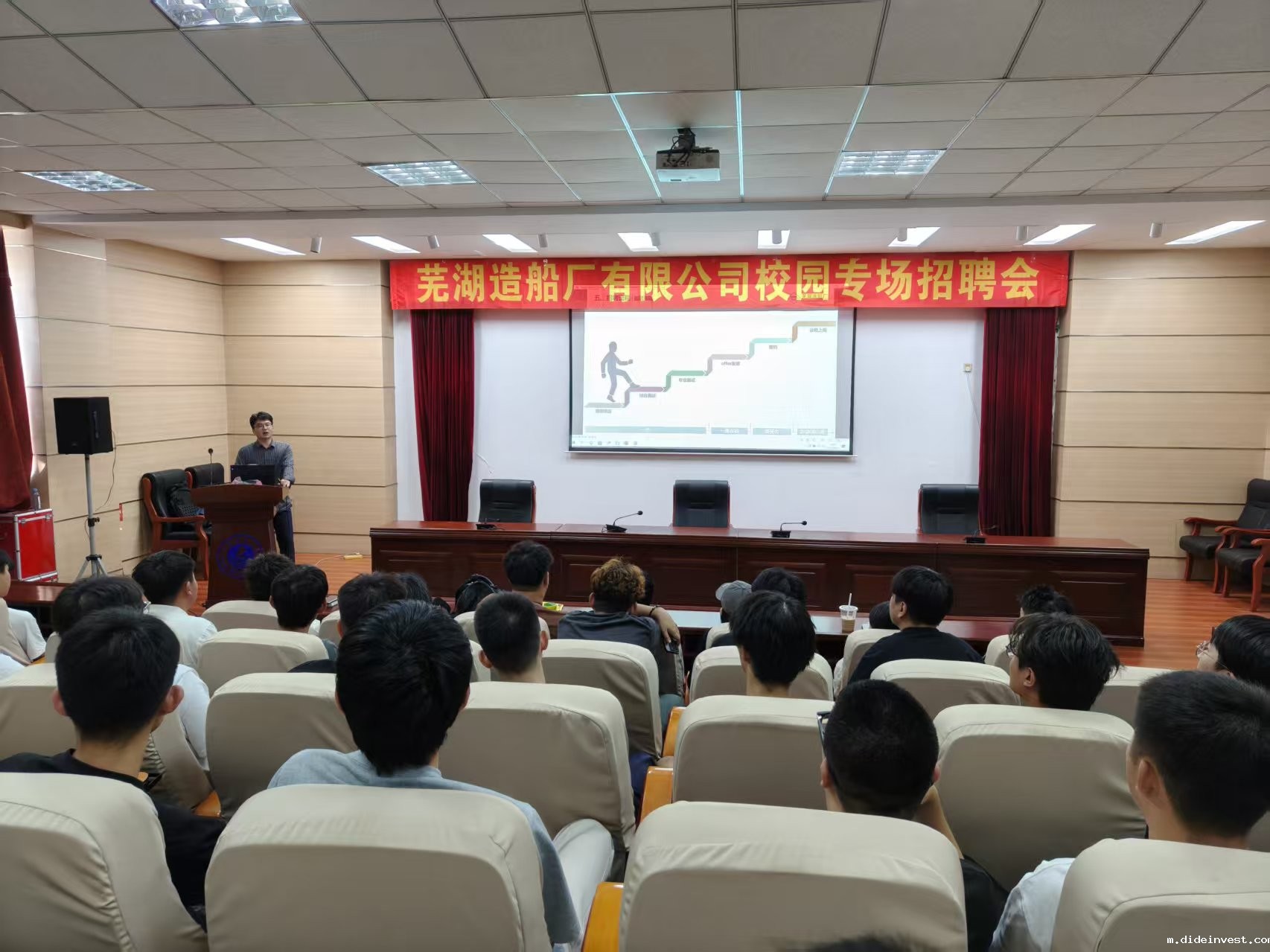 2025年9月24日,机械工程系在主教119报告厅开展芜湖造船厂校园专场招聘会。我系近200余人次2026届毕业生参加。会议由机械工程系主任唐继武主持。